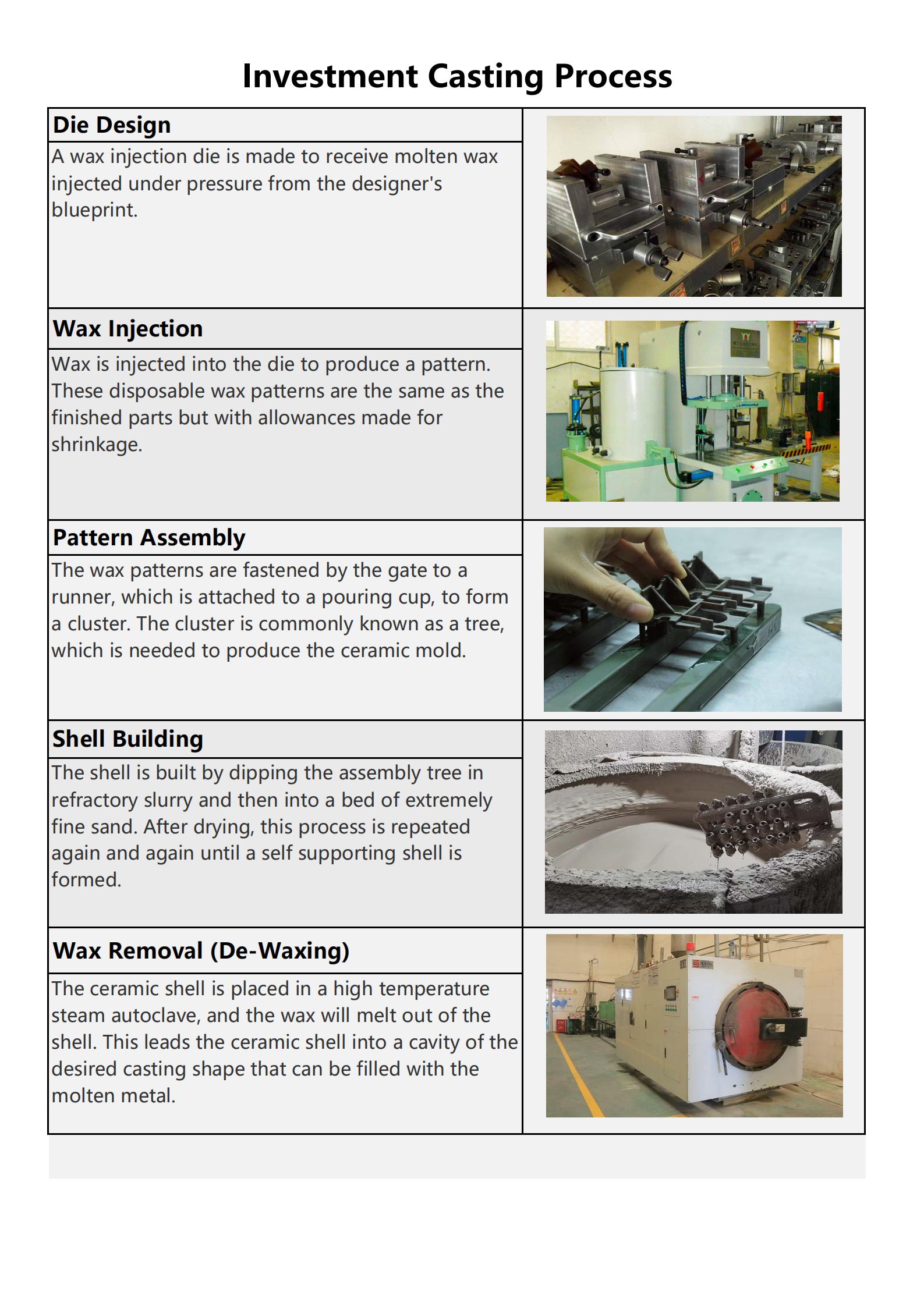 | Materials for Investment Casting Process at RMC Foundry | |||